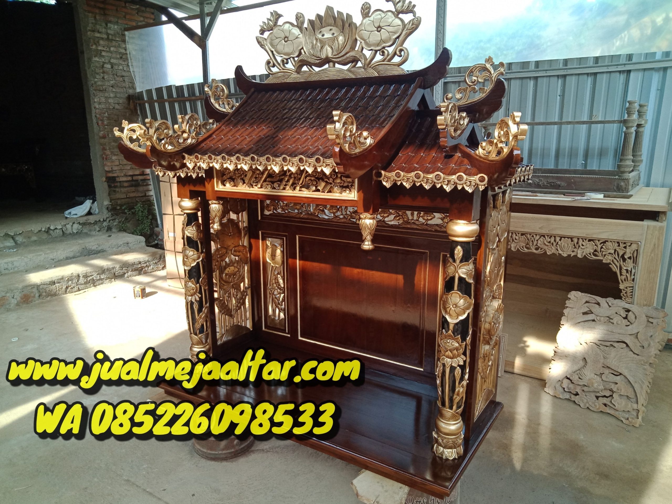 Kami menjual altar dewi kwan im ukir teratai dengan harga murah meriah namun tetap memiliki kualitas yang mewah, bahan baku altar dewi kwan im yang kami jual semuanya dari kayu jati perhutani kering dan tua tentunya awet dan anti rayap.